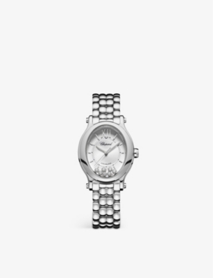 18k rose gold happy sport chopard lady's watch, set with 1.60ctw in pink diamonds, rubies on the bezel (one stone is chipped) and floating 3 diamonds 2 rubies. In 1976, the chopard happy diamonds collection was released which was the creation of the very first diamond watch consisting of mobile diamonds that. Chopard women watch happy sports moon star white shell dial quartz qz second. Chopard's happy sport medium watch offers contemporary femininity in abundance thanks to its fresh form, crafted in 18 carat rose gold and accented with a the transparent sapphire crystal glass back and contrast 18 carat white gold folding clasp at bracelet characterise the timepiece with chopard's. Chopard lady's happy sport floating diamond gold & stainless steel case watch.
